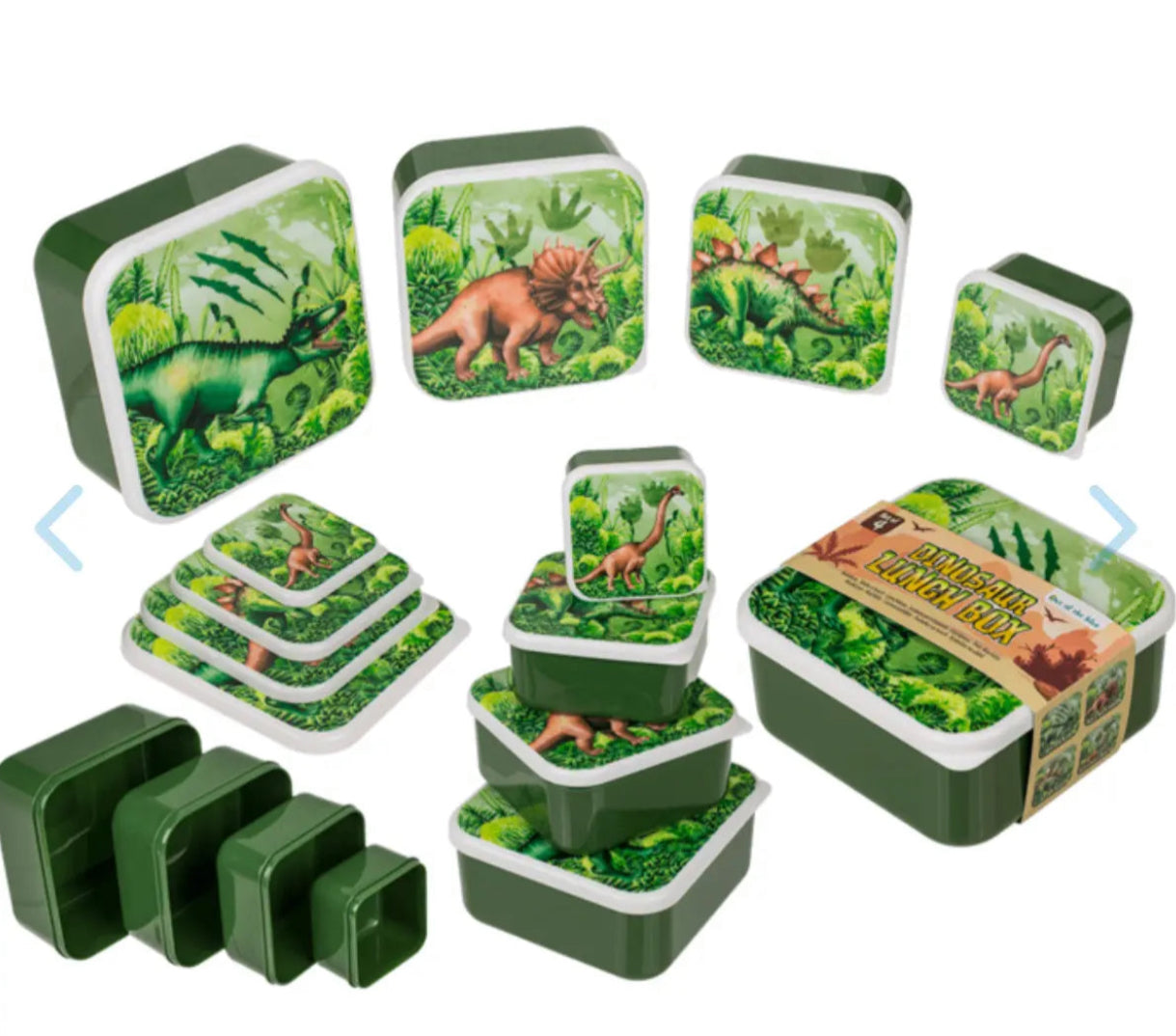 This set of 4 dinosaur-themed lunch boxes is perfect for kids who love fun and practical storage. Made from durable plastic, each box comes in a different size to suit sandwiches, snacks, or small treats. The nesting design helps save space when not in use.
